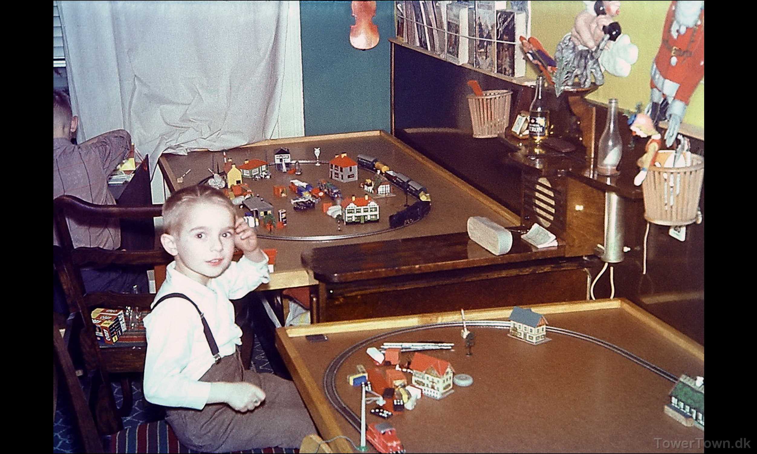 Far Svend lavede to nedklapbare togbaner som mor Ruth byggede op med bjerglandskaber i hønsenet og papmache samt små huse i byggesæt. (Man skal vælge sine forældre med omhu!)
