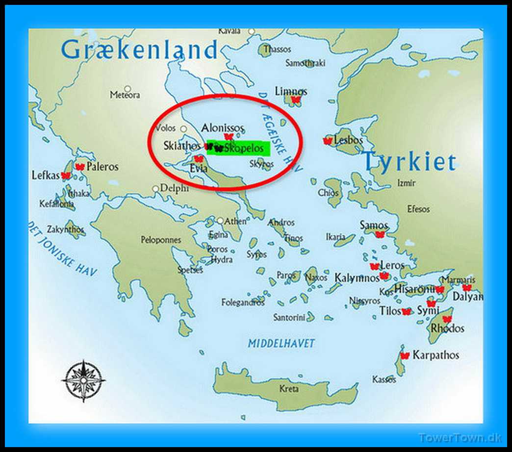 Grækenland med Skopelos markeret
