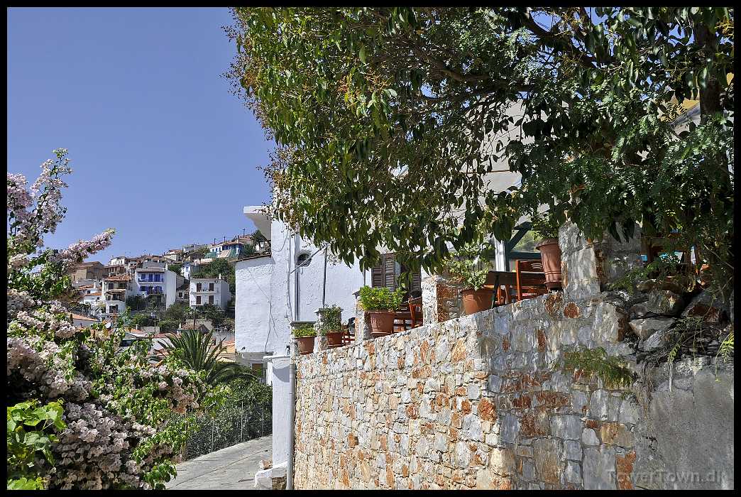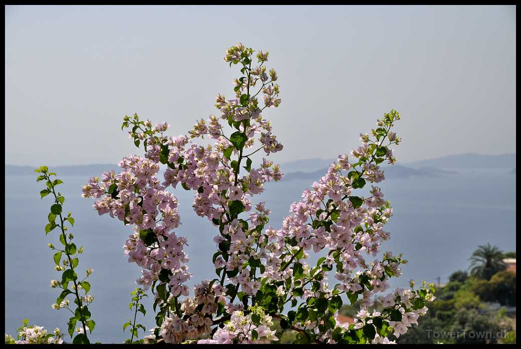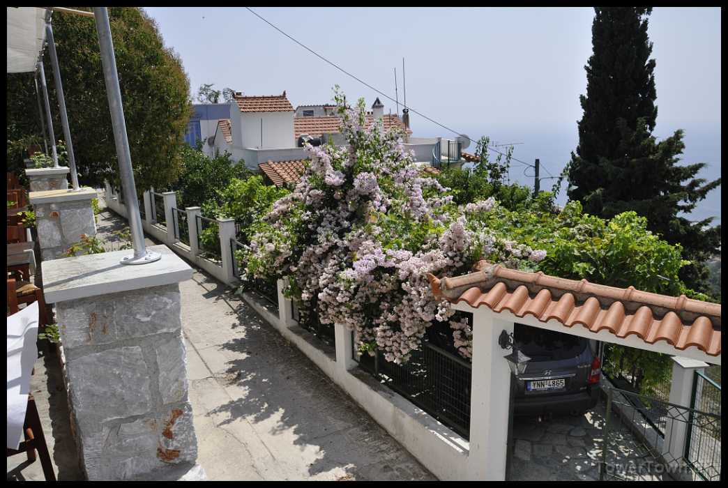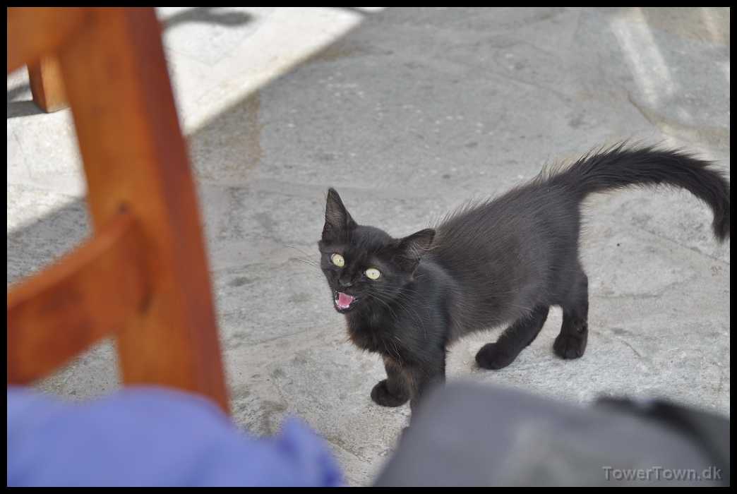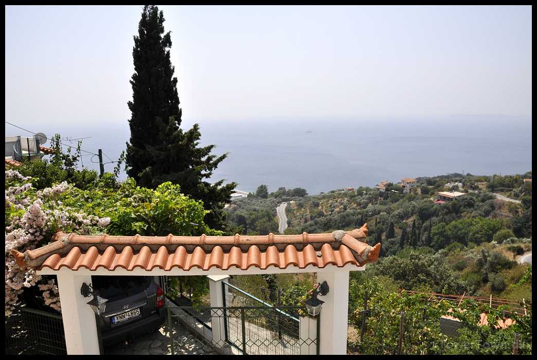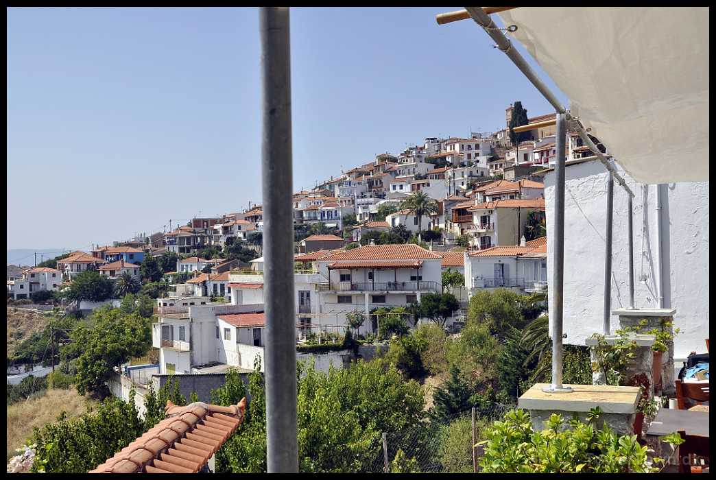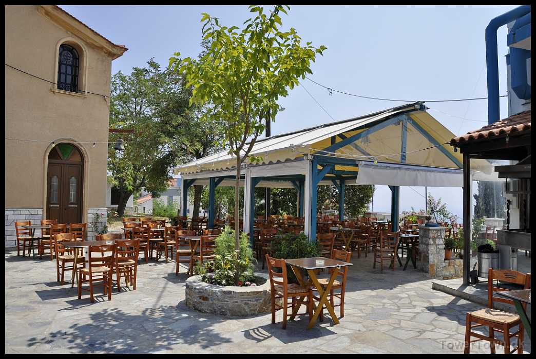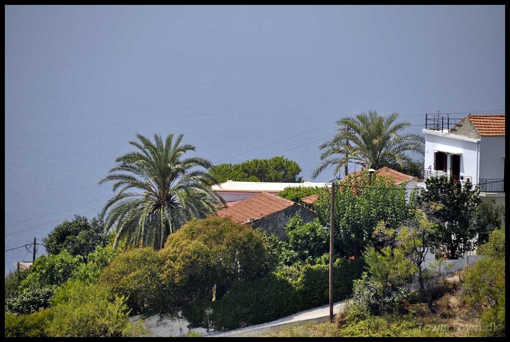 Den græske salat ledsages her af en fremragende udsigt over havet.