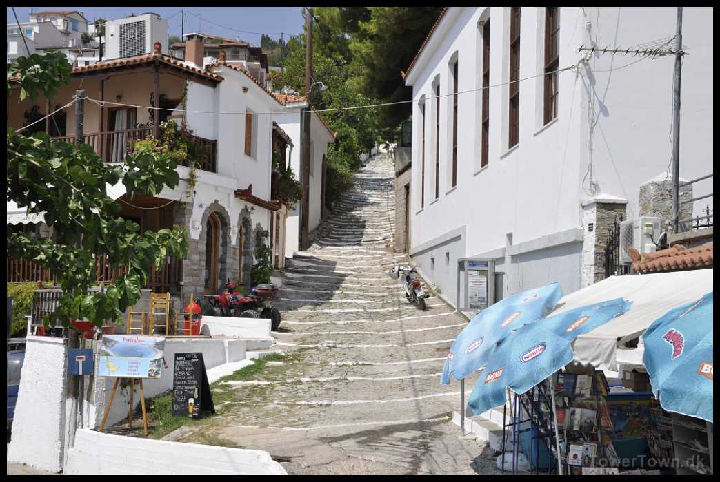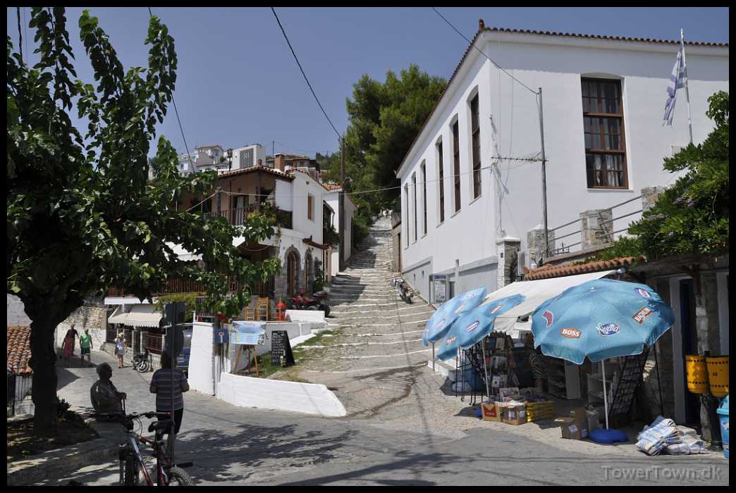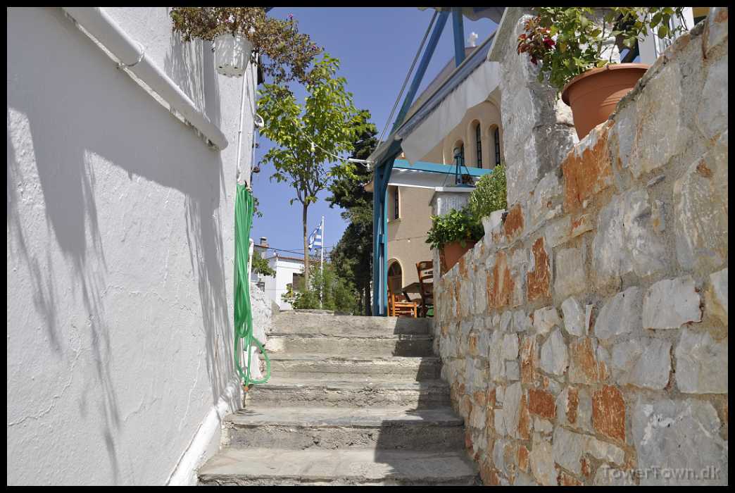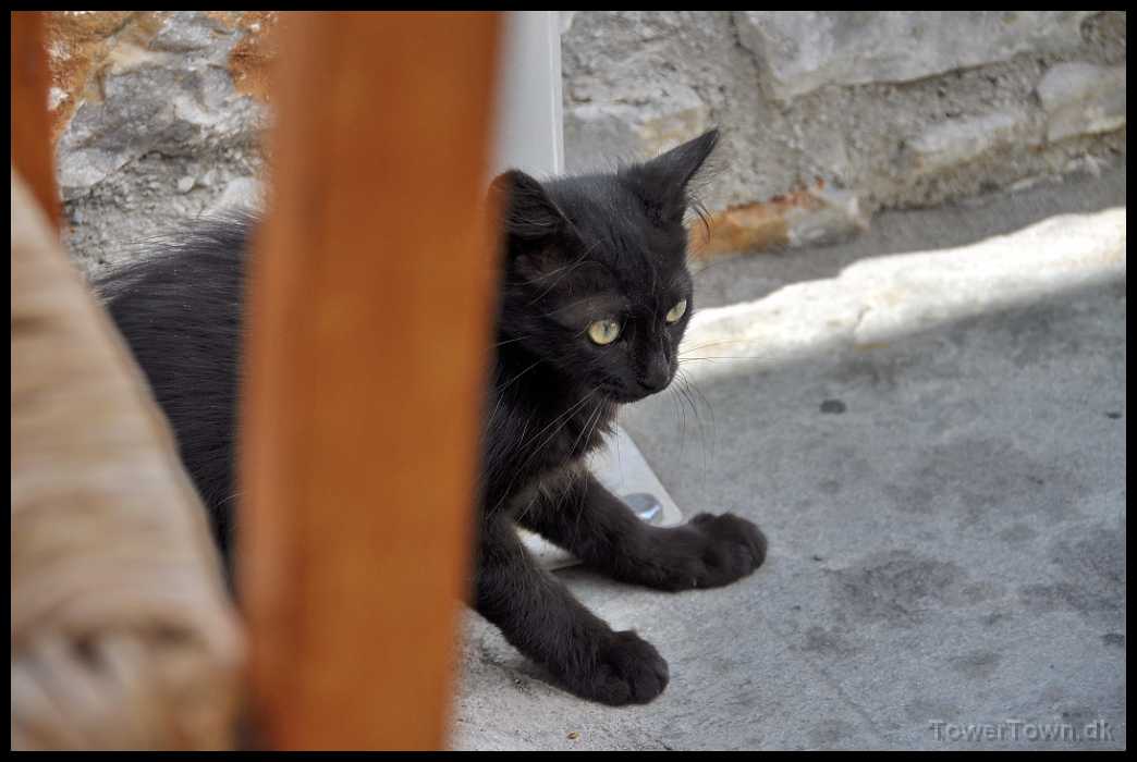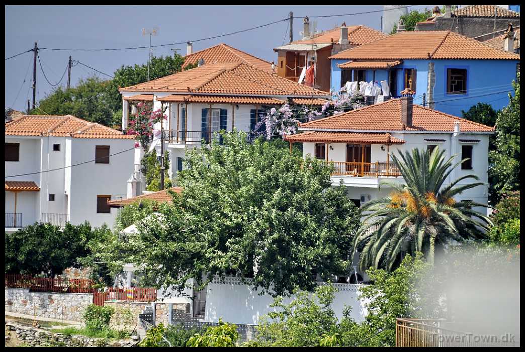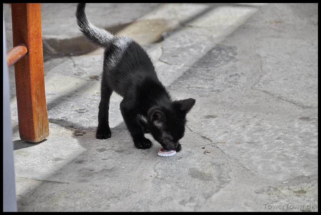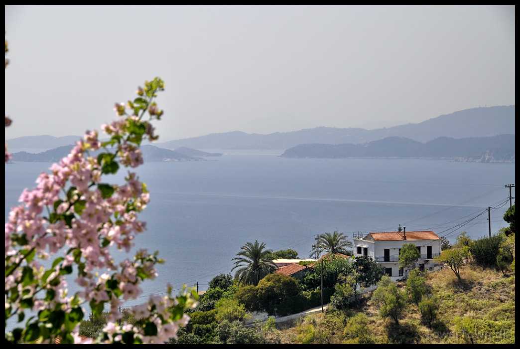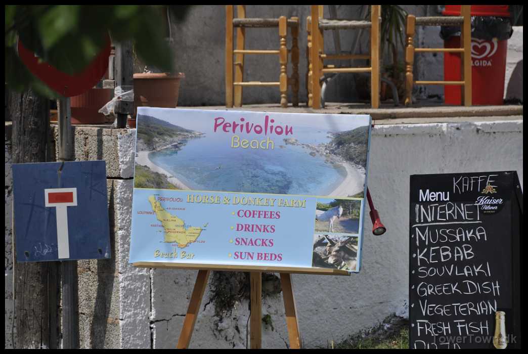 Den græske salat ledsages her af en fremragende udsigt over havet.