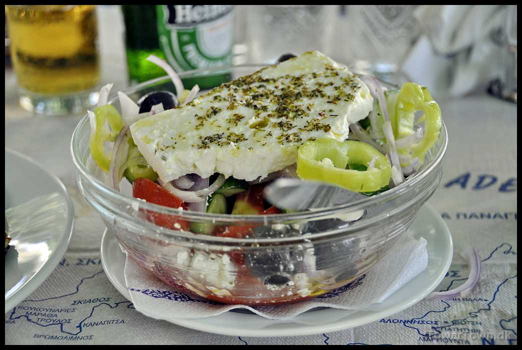 Georgias mand Vaggelis i færd med at servere endnu en portion lækker græsk salat.