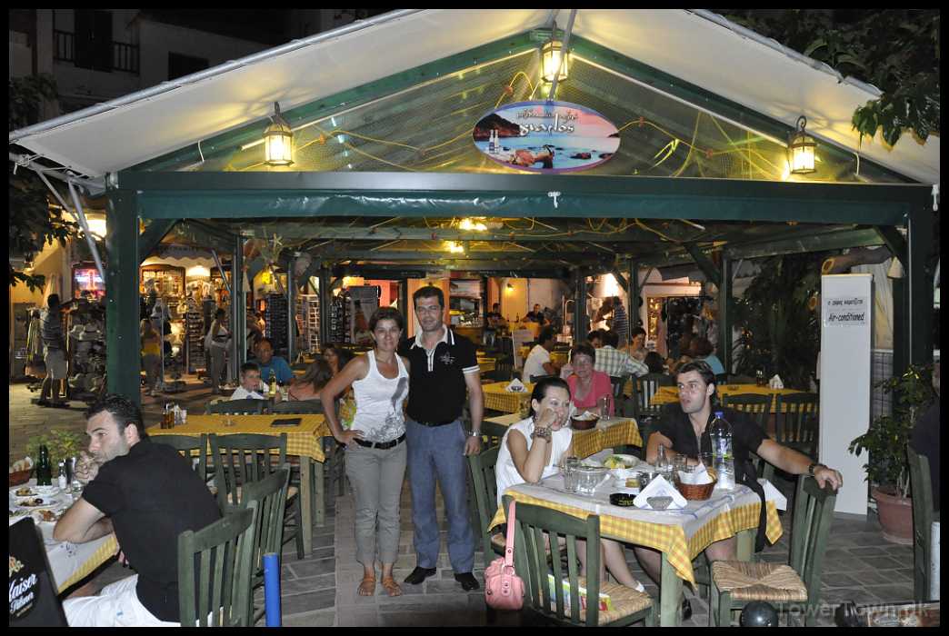 Georgia og Vaggelis foran deres hyggelige Taverna 'Gialos'.
