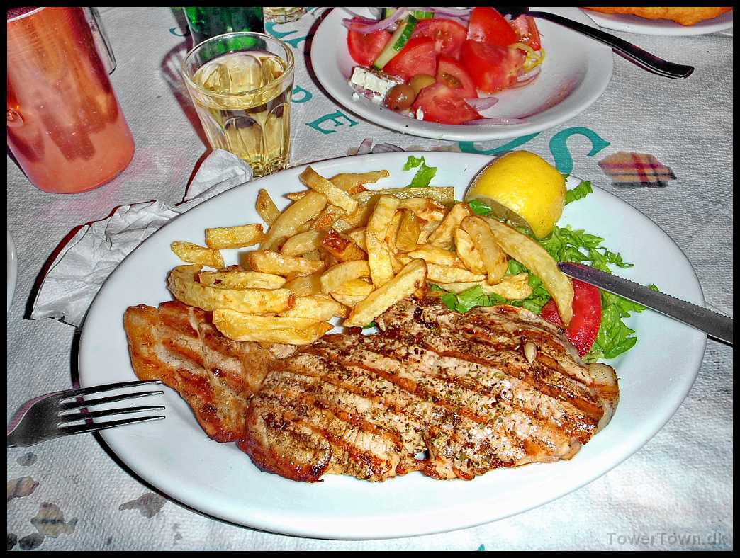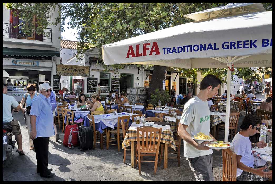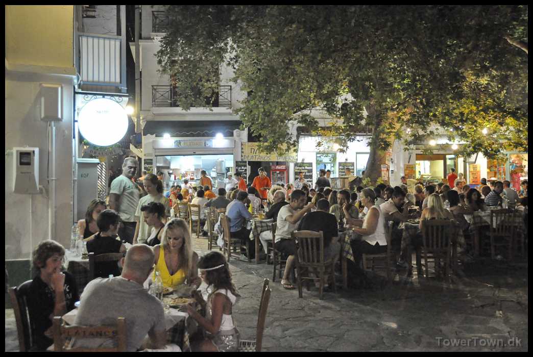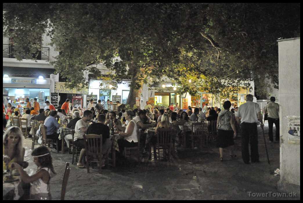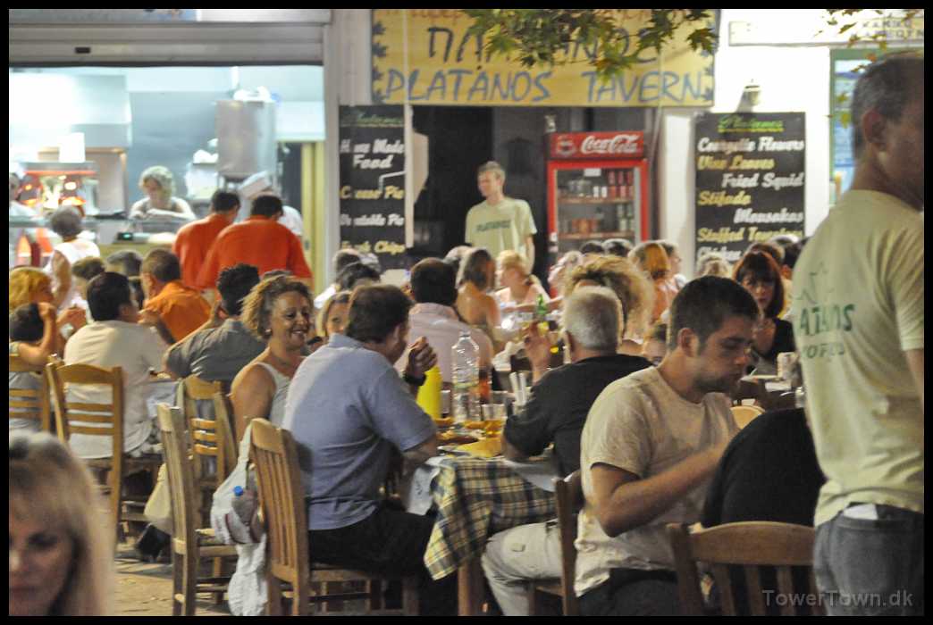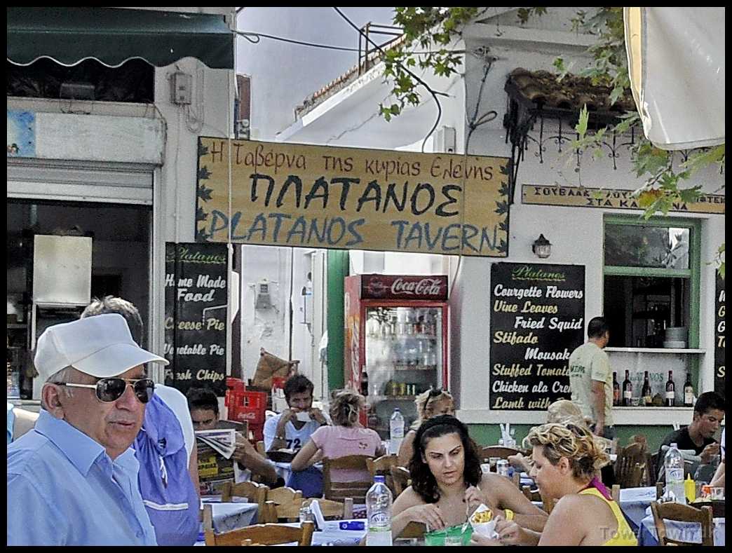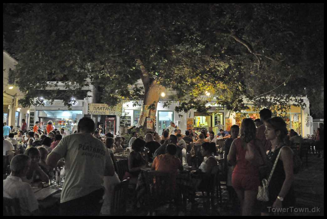 Taverna Platanos er et større foretagende placeret lidt oppe i byen under et kæmpe Platantræ.