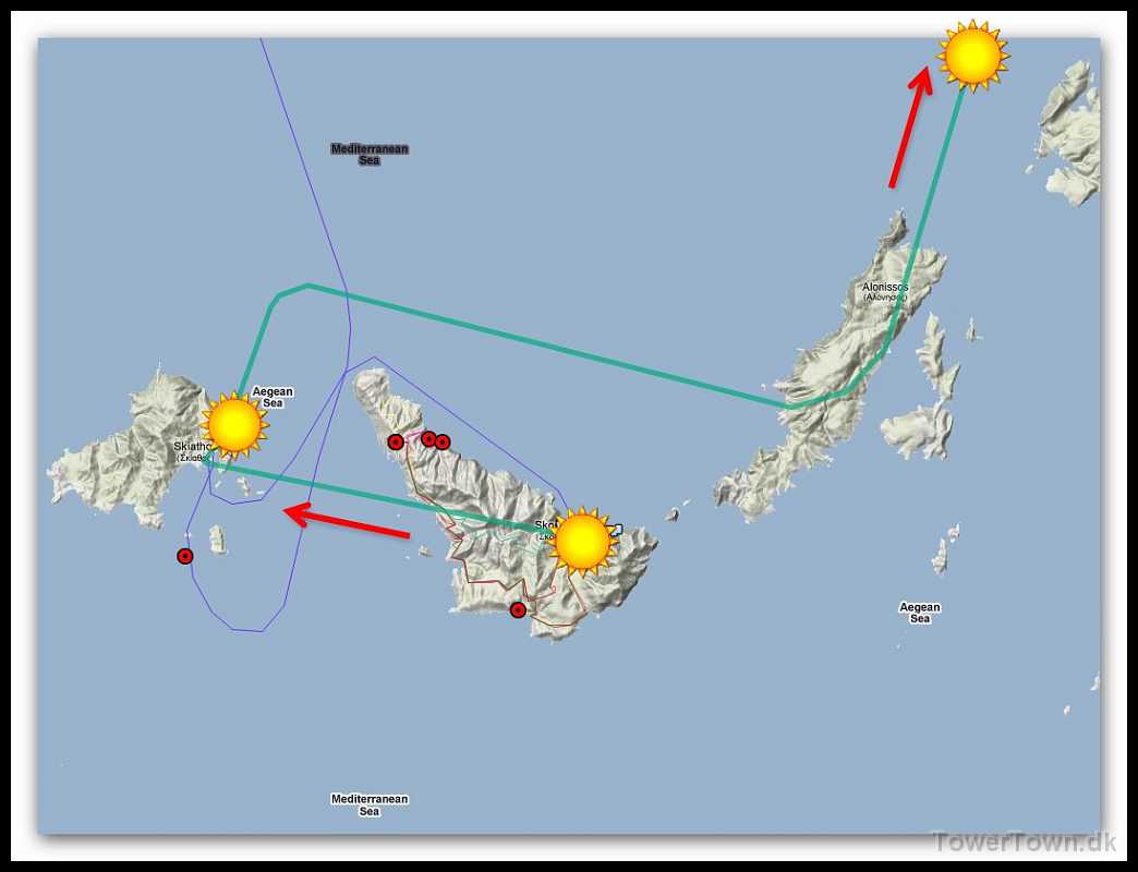 Vi maser os ombord på denne 'Flying Dolphin' der skal til Skiathos via. Glossa.
