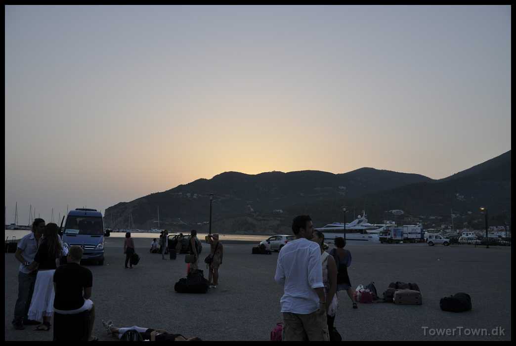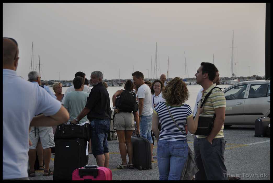 ... hun sammenkalder de hjemrejsende for at forklare at båden der skal sejle os til Skiathos ikke kommer pga. maskinskade!!!