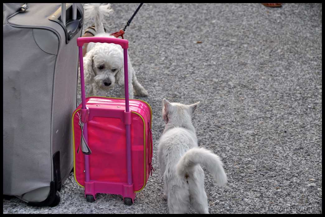 Hun kæmper for at arrangere en alternativ afgang, så vi stadig kan nå flyet i Skiathos lufthavn.