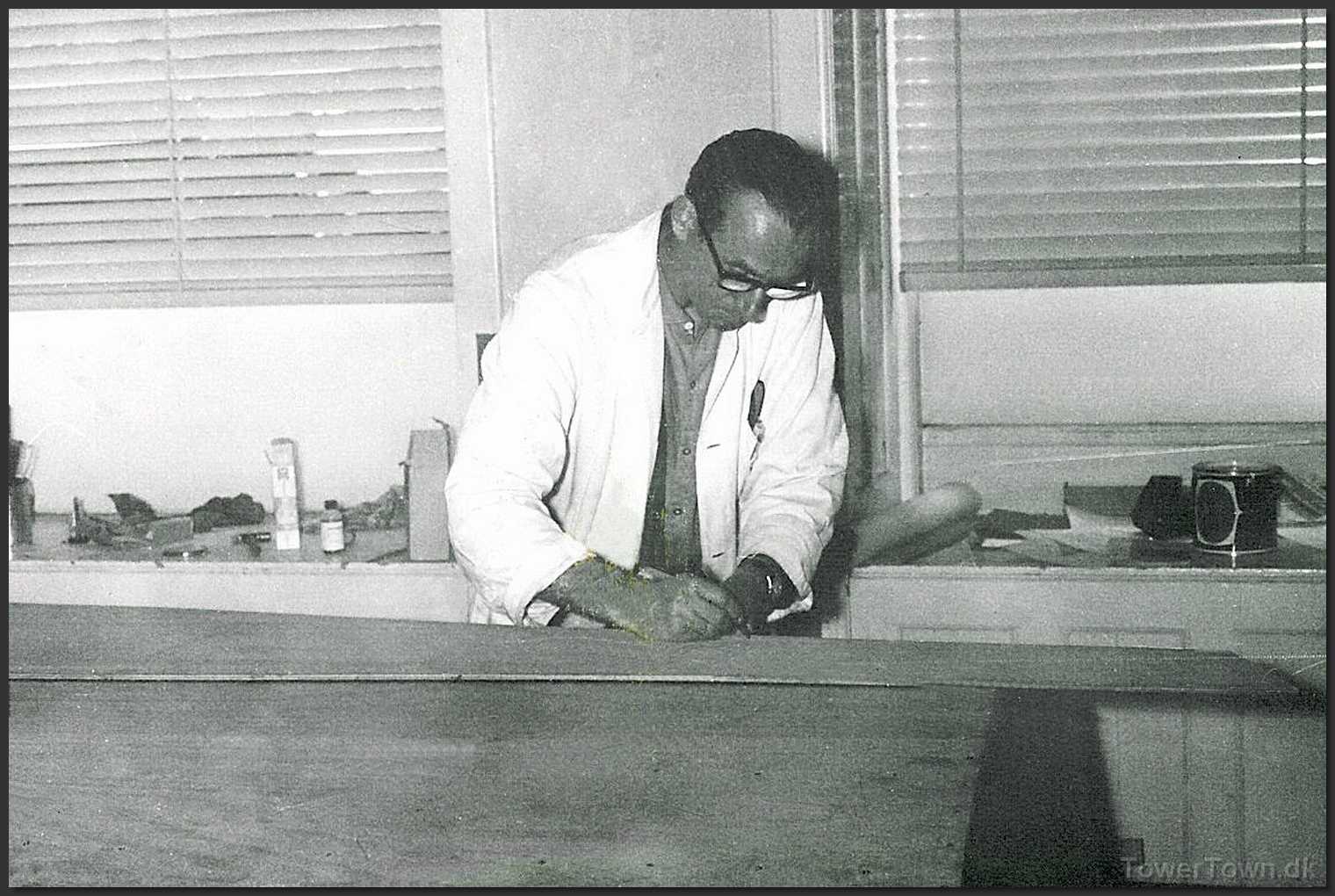Her har Svend Hansen ryddet et lokale i TowerRadio for at bygge en båd til en af sønnerne.